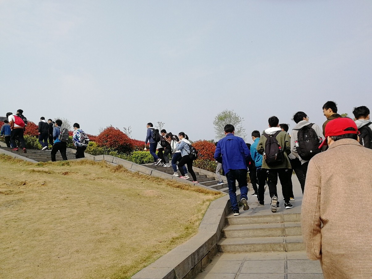 伴随着永恒的春风,经过一个小时行程,大部队终于到达了目的地---紫蓬山。望着巍峨的山门,大家都对这次活动充满期待。广场上,大家自由分组,由组长带领爬山,既能培养团结精神,又能够保障大家的安全。踏着春光,同学们开始了登山之旅。