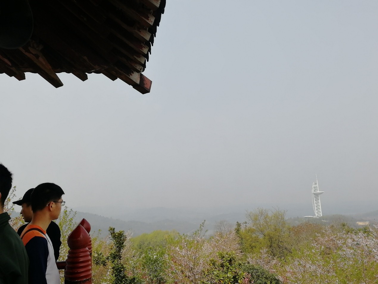 一路山花烂漫。不满足于一成不变的同学们另辟蹊径,选择了走大路旁的小路,原以为山穷水尽,却没想柳暗花明,呈现在大家眼前的是一片樱花林,落英缤纷,游人如织。大家登上亭子,极目远眺,远处群山连绵不绝,让人望之即心胸开阔,心旷神怡,也算是了了没能赶上科大樱花节的遗憾。