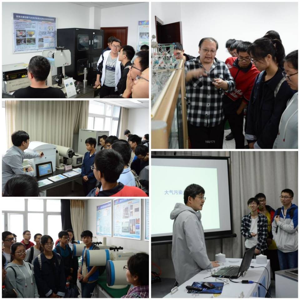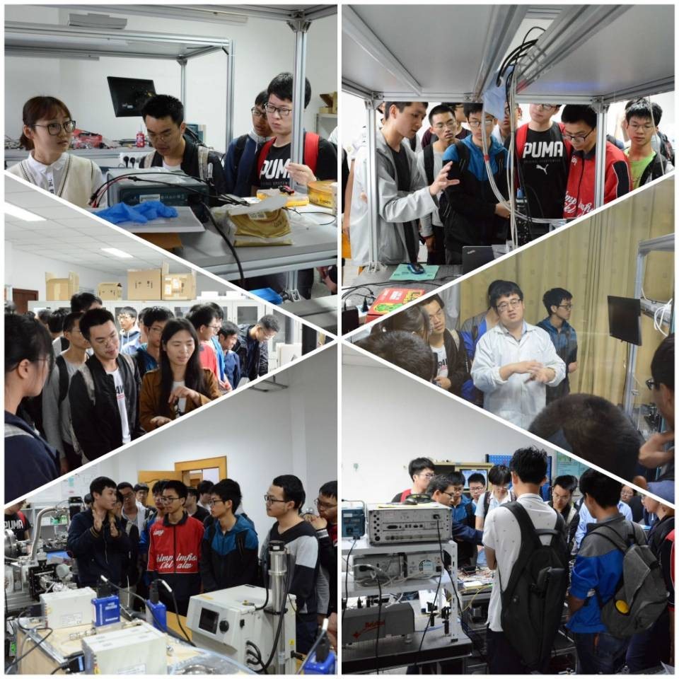 报告会结束后,同学们在安光所老师和同学们带领下,2组对14个实验室进行了参观,其中包括基础科学中心实验室、环境中心实验室、激光中心实验室、FTS以及观测场。各实验室研究人员非常热心地给同学们介绍各实验室研究项目和研究进展,用易懂的方式讲解仪器的研制目标和工作原理,并做了一些神奇有趣的演示。同学们也是兴趣十足,不时抛出一些颇有见解的问题,和研究人员进行积极互动。