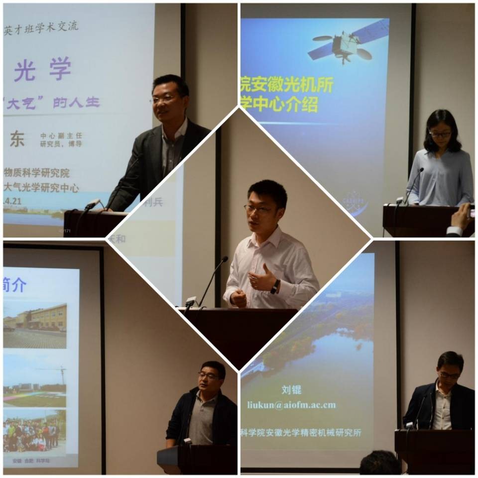 随后,安光所翁宁泉研究员介绍了安徽光机所历史沿革、学科方向、研究成果、师资队伍、招生专业、研究生培养。刘东、罗宇涵、翟文超、游利兵、刘锟等老师分别介绍了安光所大气光学中心、环境光学中心、光学遥感中心、激光技术中心和基础科学中心的研究情况。