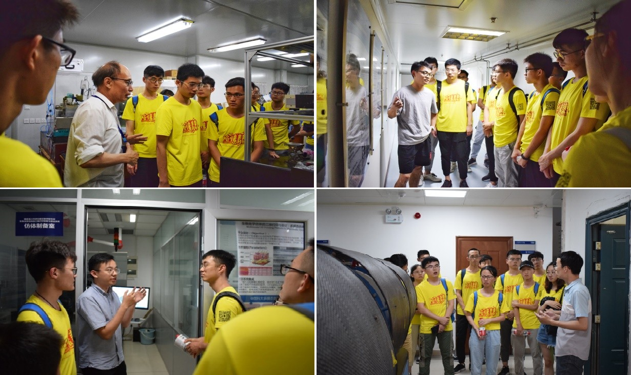 除了教室内的学术讲座,实验室参观也是营员们期待已久的重磅环节。酷热的夏日抵挡不住大家对科学的向往,17日下午,营员们在志愿者的带领下分组依次参观了各系最具特色的实验室,如多相与多场耦合实验室、智能材料和共振控制实验室、微结构力学与计算材料实验室、光电信息技术实验室、多模态医疗影像实验室、微纳米热科学实验室、空天飞行器热防护实验室、生物质转化利用基础研究实验室等近二十个实验室,零距离接触到最先进的实验仪器与最前沿的科学技术。