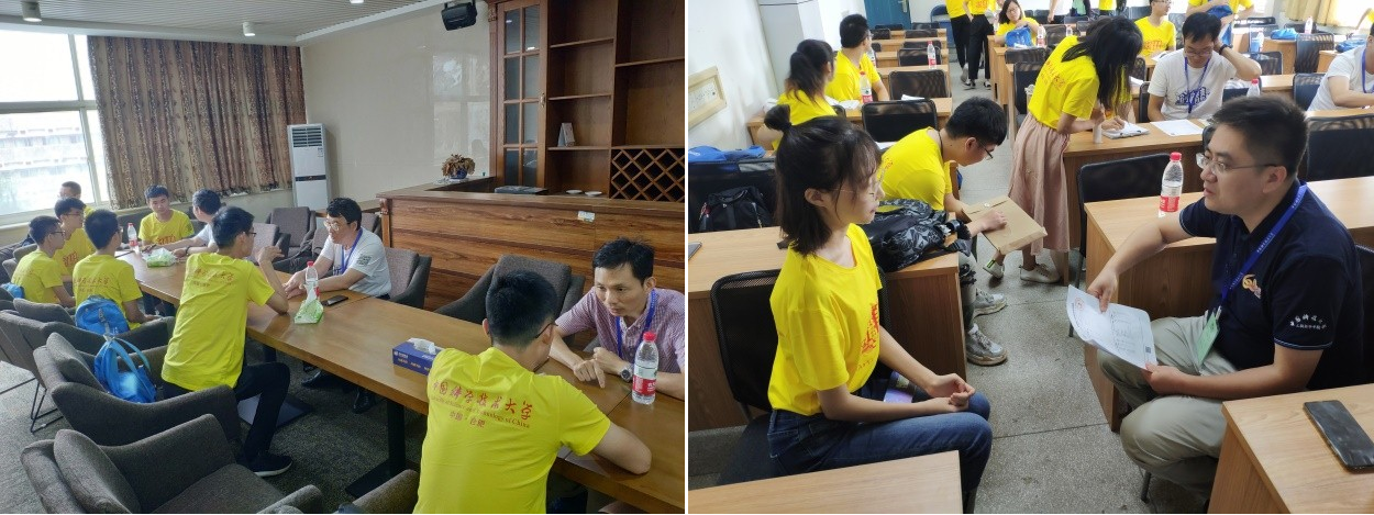 715日,营员们陆续前来报到,志愿者们也提前到达酒店,为营员们发放营服、书包等含有科大元素的必备用品。志愿者们的热情如同当日的骄阳炽热,友善地为远道而来的营员们解答各个方面的疑问,他们分工明确,核对信息、发放物资、办理校园消费卡,所有环节都有条不紊。