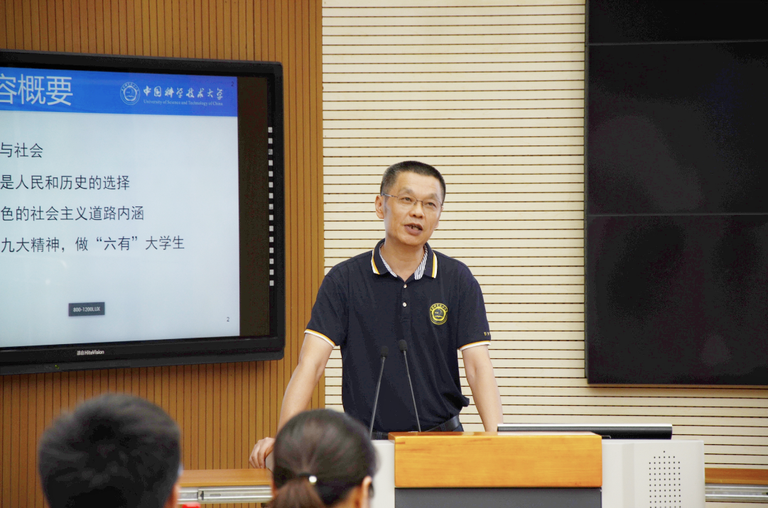 围绕“共产党是历史和人民的选择”,刘明侯书记以工业革命为起点讲述了几百年来世界局势变化和中国发展历程,充分说明了落后就要挨打,体现出中国共产党创业的艰辛。他回顾了历届党代会重要思想及奋斗目标,介绍中国共产党全国代表大会相关基本内容,带领大家学习了党中央治国理政新理念、新思想、新战略的基本内涵,学习了党的十九大习近平新时代中国特色社会主义思想,指出十九大精神是全党、全国各族人民智慧的结晶,希望同学们认真学习、深入了解。刘书记还给同学们讲述了自由与法律、自由与民主的关系,强调了党规党纪意识的重要性,介绍了新时代“四个自信”的基本内涵,学习了习近平总书记考察科大的重要讲话精神,寄语同学们好好学习,报效祖国和人民。