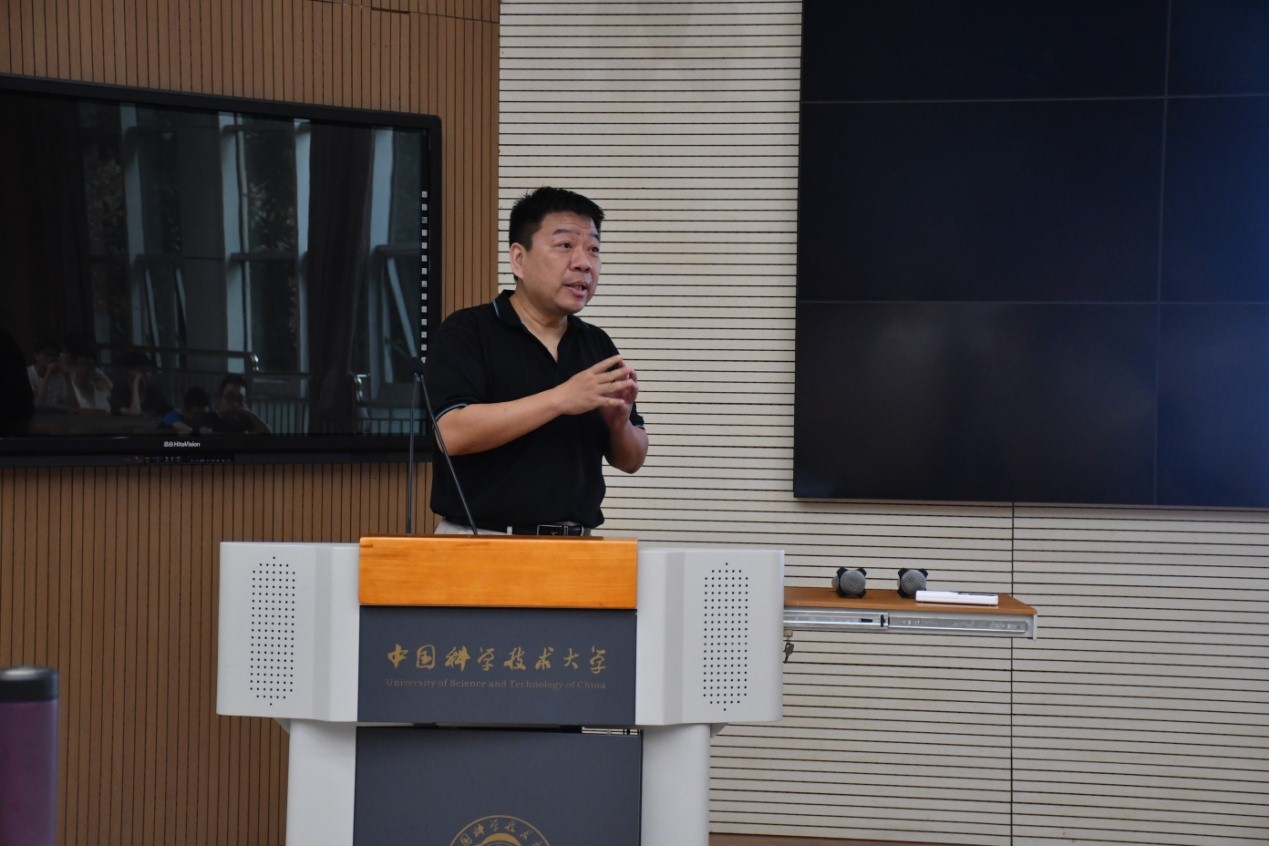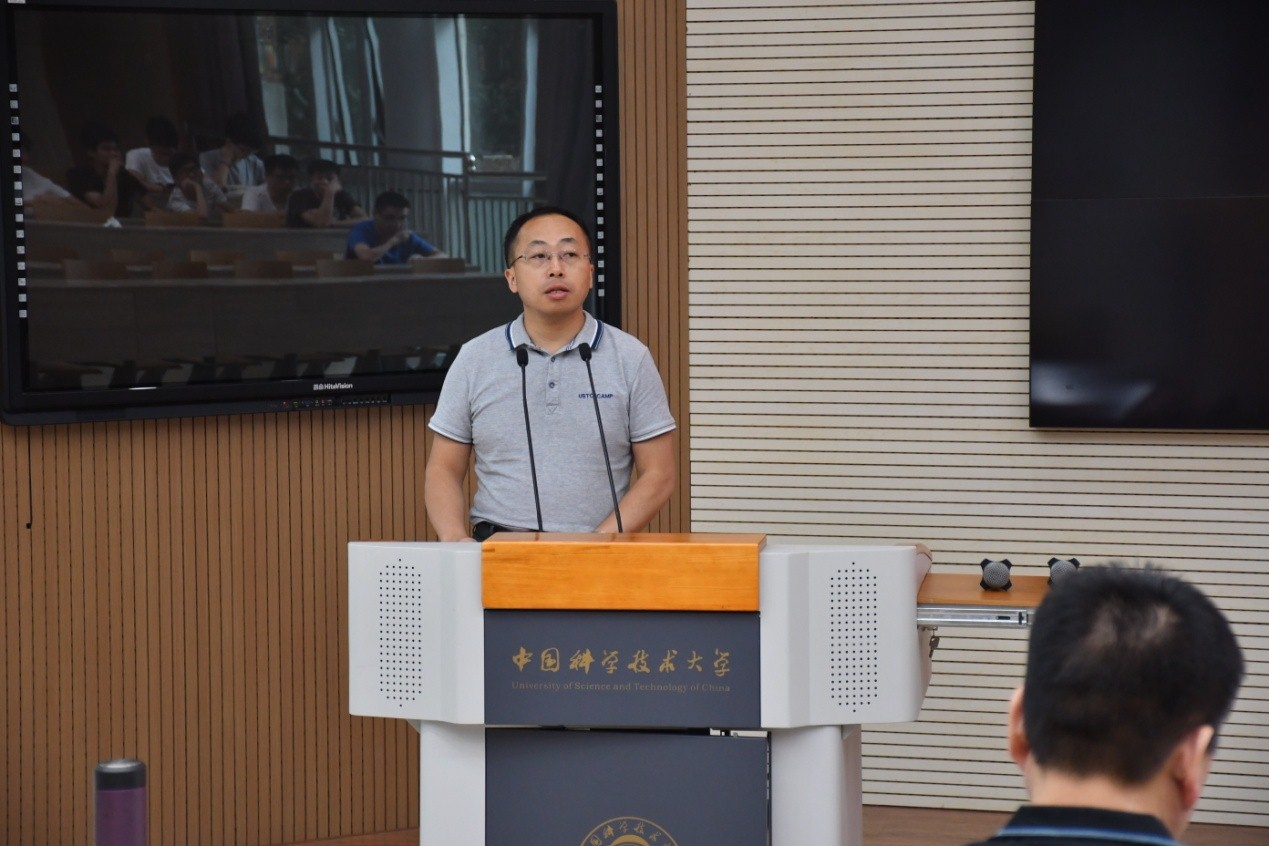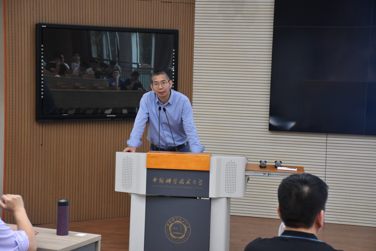 随后,副院长裴刚教授做开元(中国)科研工作介绍。裴刚教授对我院的专业设置和师资队伍进行了简单的介绍。同时详细介绍了我院各专业的科学研究前言,期望学生敢于创新,做违反人直觉的科研。作为导师,裴刚教授为新生指出了研究生阶段学习生活的不同,要学习的技能,学习资源的渠道,做科研的渠道以及毕业要求。并表示“来到科大是一件美好的事,幸运的事”,希望所有同学学有所成。