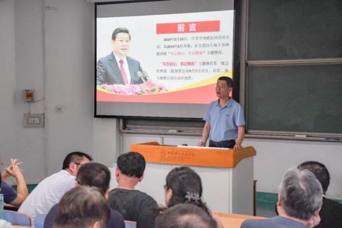 刘明侯说,学习是共产党人克难制胜的法宝,提升政治生命力的法宝。开展党内集中教育活动,是解决党内存在的突出问题,加强党的自身建设的重要措施,是提升执政能力的重要保障,是中国共产党人的红色优秀基因。他围绕党中央《关于开展第二批不忘初心、牢记使命主题教育的指导意见》和9月10学校“不忘初心、牢记使命”主题教育动员大会的精神,传达了党委书记舒歌群提出的要求,希望各级党组织和全体党员要准确把握党中央精神,结合学校实际,对准目标,积极推进,确保取得预期效果。从政治高度认识主题教育的重要意义,进一步提高政治站位;强化责任意识,增强落实主体责任的使命感和紧迫感;坚持问题导向,有的放矢地进行整改;坚持标本兼治,确保整改取得实效长效;以主题教育为契机,加快建设中国特色、科大风格的世界一流大学。