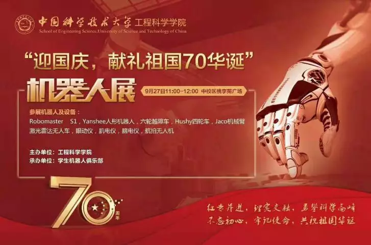 至此,“迎国庆,献礼祖国70华诞” 机器人展圆满结束。工院学子不忘初心,牢记使命,以所研所学,为新中国成立70周年的献上美好祝福。此次展览不仅为师生们呈现了精彩的机器人表演,更是将专业内理论知识应用于实践以表达爱国情感,向大家诠释了科大人红专并进,理实交融的精神。