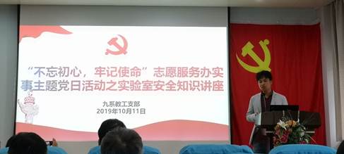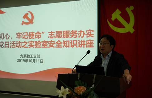 2019年10月11日,为深入开展“不忘初心、牢记使命”主题教育活动,践行共产党员志愿为群众办实事的精神。精密机械与精密仪器系(九系)教工支部在力一楼239开展了关于实验室安全知识为主题的党日活动。活动邀请了合肥工业大学实验室安全管理中心主任钟华勇作为主讲嘉宾,也邀请了开元(中国)教开元(中国)长张世武教授参加会议。会议由教工支部书记叶回春主持,九系教工支部的党员和开元(中国)内感兴趣老师和同学参加了会议。
