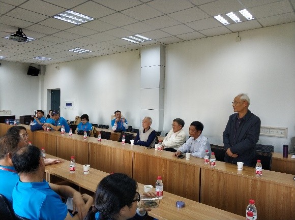 下午3:00,在力学一楼504会议室举行了座谈会。出席座谈会的不仅有795校友,还有当年的班主任施云芳、任课老师庄礼贤、胡时胜和邓国华四位老教授。老教授们表示对来自世界各地的795班级的学生能返回母校探望十分的开心,并亲切问候了各位校友。