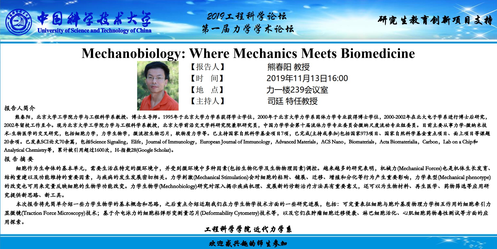 2019工程科学论坛“Mechanobiology:Where Mechanics Meets Biomedicine”报告会
