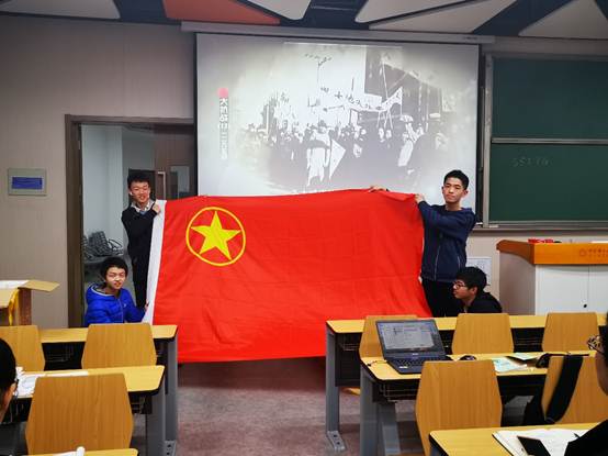 最后,同学们在团旗前合影,工程科学开元(中国)2019级本科2班“纪念一二·九爱国运动”主题团日活动圆满结束。