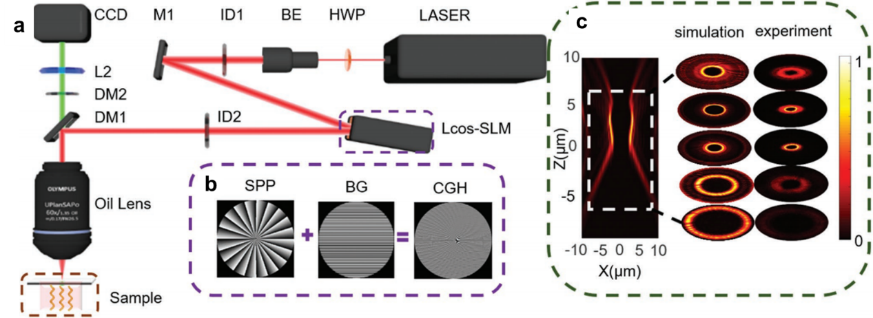 图1 调制三维涡旋光场加工空心管状与锥形螺旋结构