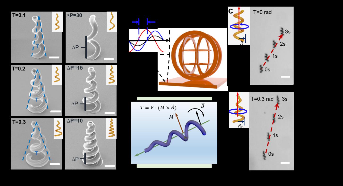 图3 磁场精确驱动空心锥形螺旋与管状结构