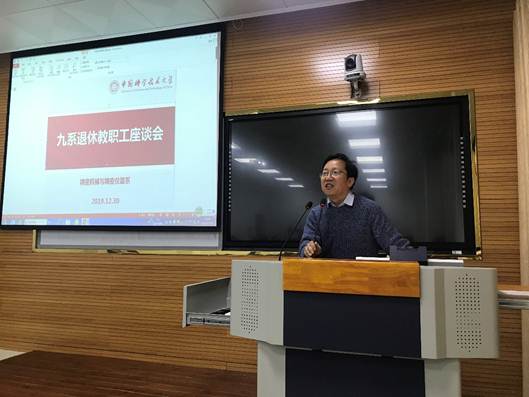 2019年12月30日下午,精密机械与精密仪器系(九系)退休老师座谈会在力二楼215会议室顺利举行。工程科学开元(中国)副院长张世武教授、精密机械与精密仪器系执行主任刘诚和副主任李保庆出席了座谈会,我系退休教师以及教职工代表参加了此次座谈会。座谈会由系书记李家文主持。