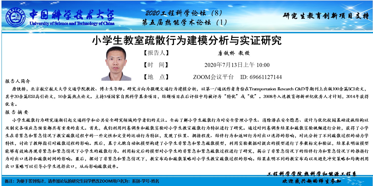 2020工程科学论坛(8)“小学生教室疏散行为建模分析与实证研究”