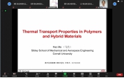 英国赫尔大学李桂强博士详细介绍了其对太阳能光电光热综合利用的研究进展和所取得成果,美国康奈尔大学马浩博士介绍了其对聚合物和杂化材料的热输运性质的研究背景和成果,美国普林斯顿大学张天汉博士主要讲解了高性能发动机中爆轰波和冷火焰的数值模拟及基于深度学习的算法开发;美国亚利桑那州立大学龙林爽博士后向与会师生详细介绍了选择性辐射调控材料及其应用,美国加利福尼亚大学圣塔芭芭拉分校岳圣瀛博士对其研究方向利用第一性原理模拟计算研究纳米材料中的热输运问题进行了介绍,剑桥新加坡高级研究与教育中心潘康博士主要讲解了对天然气直喷发动机的点火、燃烧与排放特性的研究结果,而北京大学苑坤杰博士后对复合相变材料的功能化设计合成及其在热能储存与利用中的应用进行了详细介绍。其间,提问讨论热烈,参会师生与受邀学者进行了多次交流,就相关问题表达自己的想法。
