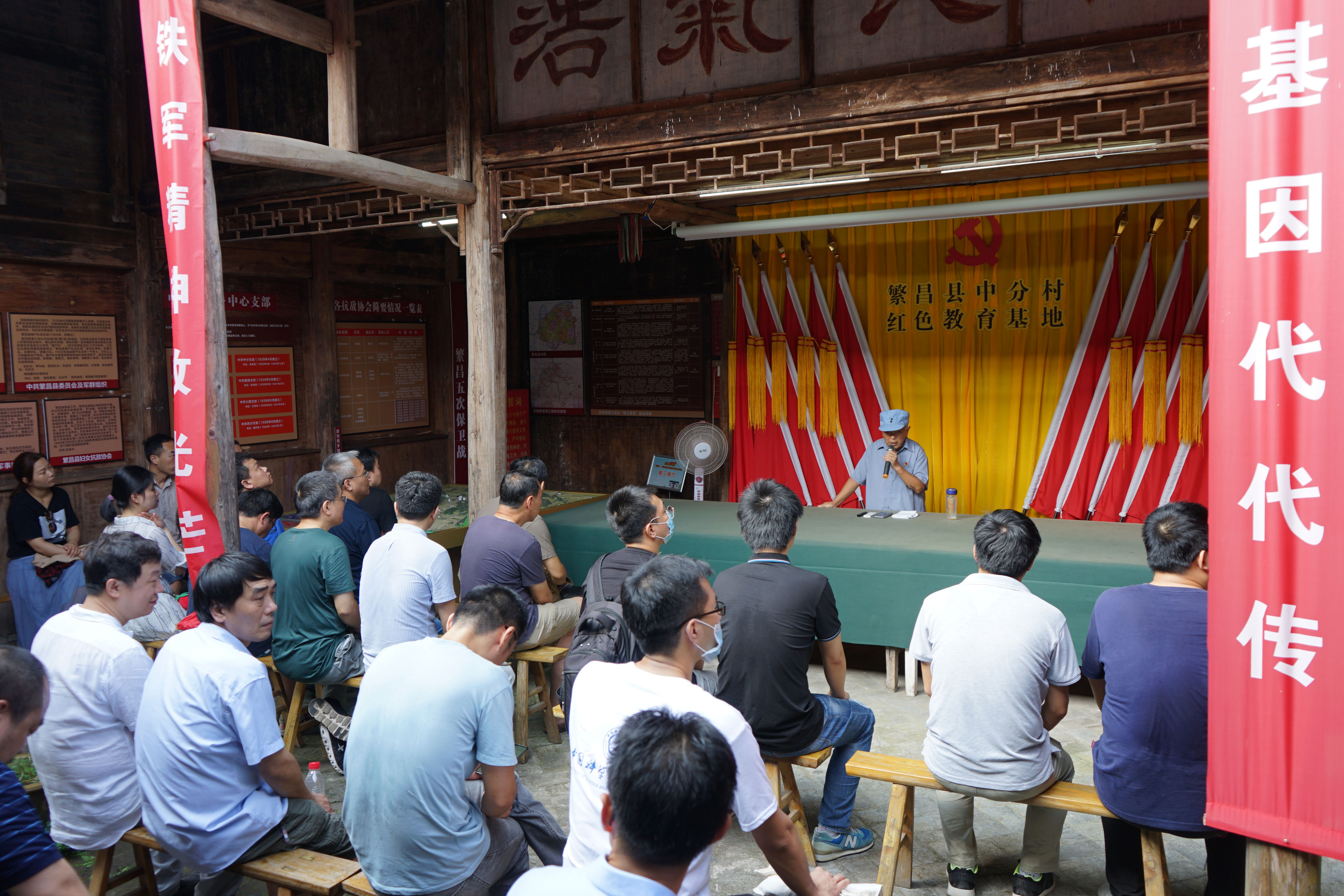 8月30日上午,实验室团队参观了位于繁昌县孙村镇中分村新四军第三支队司令部旧址。荣获2013“中国好人”、2016安徽省优秀共产党员、2019全国“最美志愿者”等荣誉称号的76岁退休教师徐孝旺老人,身穿新四军军装,饱含深情地为大家讲述了新四军三支队副司令员谭震林1939年率领新四军第三支队战士在铜繁抗日前线与日军五次争夺繁昌浴血奋战的英勇事迹,以及在中分村喜结连理的故事。