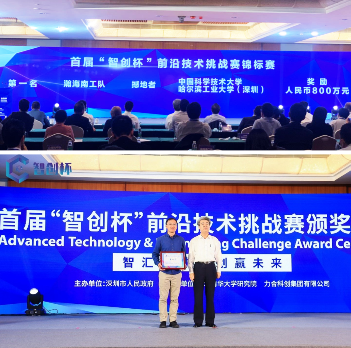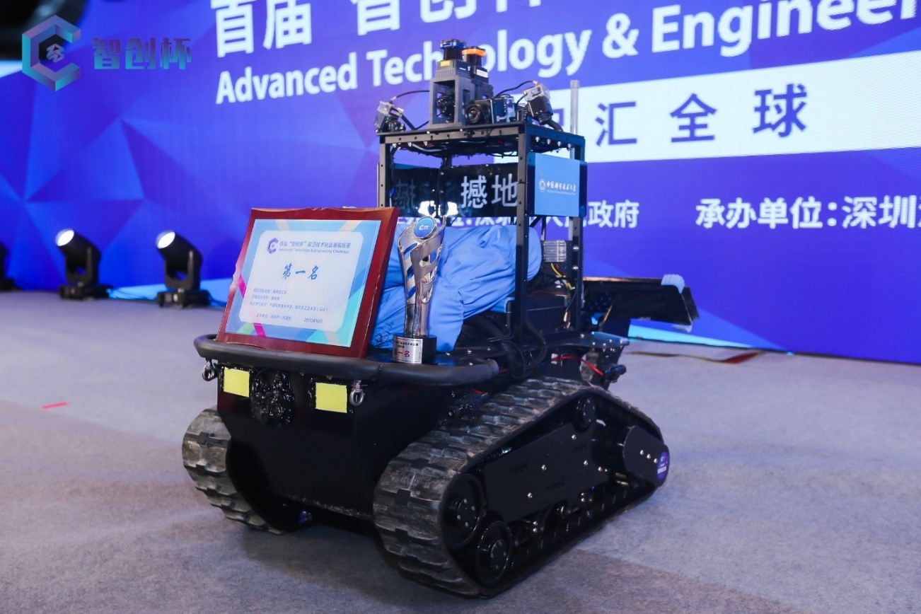 10月30日,首届“智创杯”前沿技术挑战赛颁奖仪式在深圳市市民中心隆重举行。由中国科学技术大学和哈尔滨工业大学(深圳)联合组建的瀚海南工队凭借“撼地者”机器人从海内外15支决赛队伍中脱颖而出,在以“灾后区域的探测与处置”为命题的锦标赛中摘取桂冠,并获800万元人民币奖励。