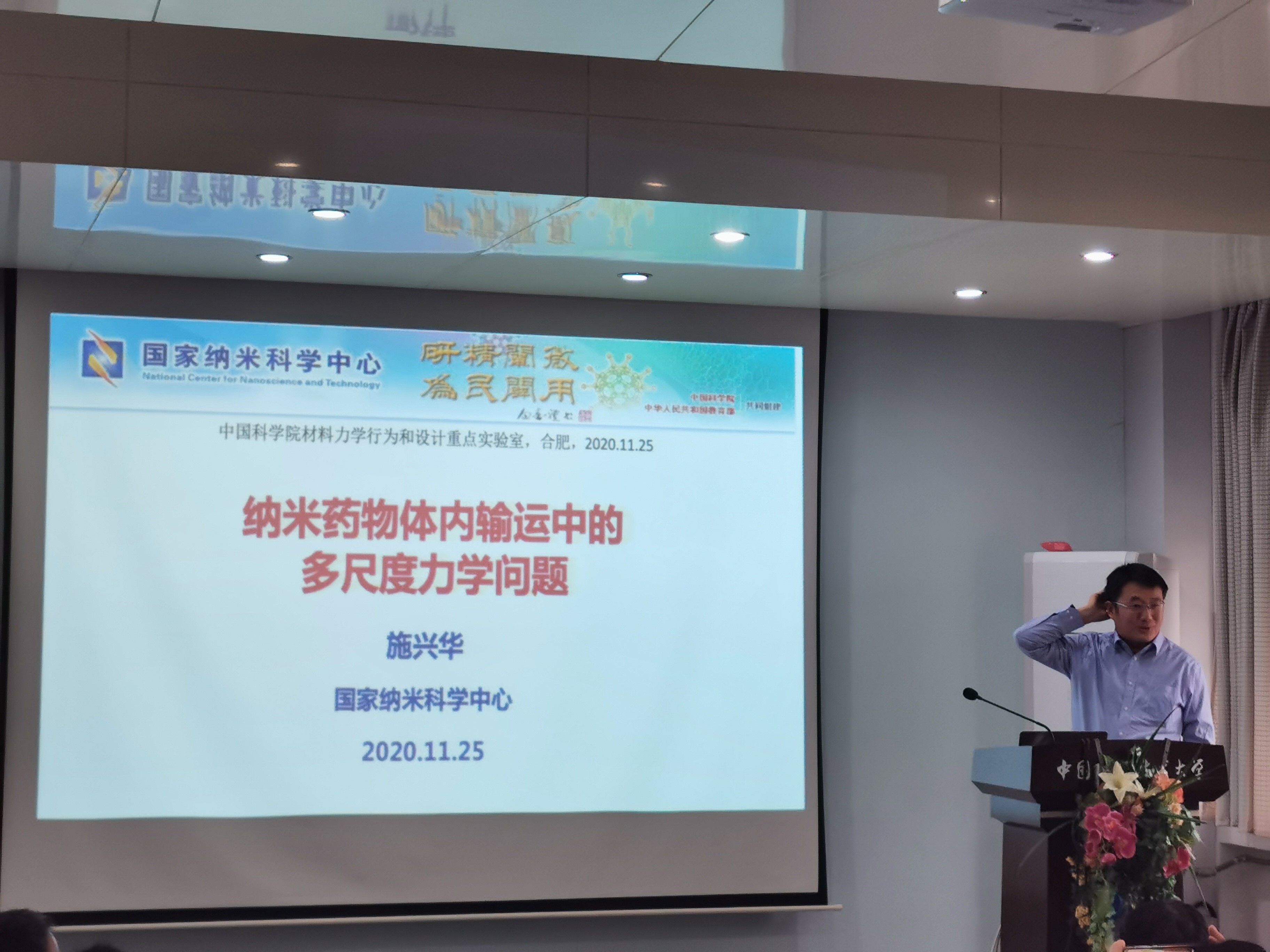11月25日下午15点,国家纳米科学中心施兴华研究员在力一楼239会议室受邀做学术报告,题目为“纳米药物体内输运中的多尺度力学问题”。报告会由工程科学开元(中国)姜洪源教授主持。