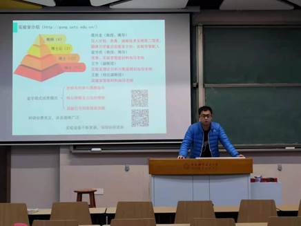 材料和结构冲击实验室的相关情况由彭克锋师兄、常白雪师姐为大家介绍。该实验室由虞吉林教授、郑志军副教授负责,主要研究方向是冲击动力学、材料力学行为与设计、结构耐撞性设计、多尺度力学、微纳米力学,近期主要研究项目为多胞材料的动态本构行为和3D打印轻质复合结构的冲击吸能行为和耐撞性设计、高速列车的冲击安全等。学长以多胞材料的故事,大众撞到法拉利,隔山打牛等精心提炼的故事为切入点,形象生动地为大家讲解了材料结构设计的重要意义和应用前景。该实验室一系列温馨的活动也给大家留下深刻印象。