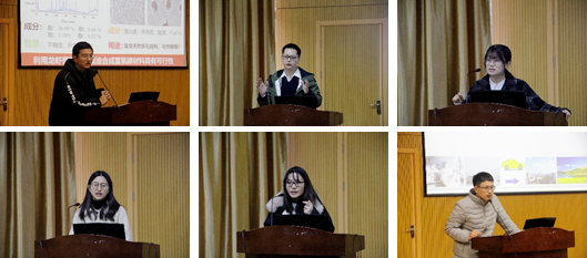 上半场,敖显泽、毕浩波、陈梓颀、黄鑫、蒋依然和陆中山等六位同学进行汇报,分别介绍了“基于二氧化钒光谱自适应材料的集热-制冷综合利用研究”、“基于神经网络的固体废物与生物质共燃特性研究”、“利用储能的碱性锌铁液流电池充放电模拟”、“层板/热障涂层耦合结构的综合冷却特性”、“水平冷却螺纹管内超临界R1234ze(E)的传热震荡及浮力效应分析”和“磁旋转非热电弧等离子体合成石墨烯纳米片”。