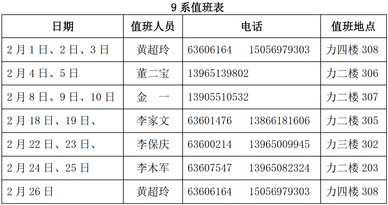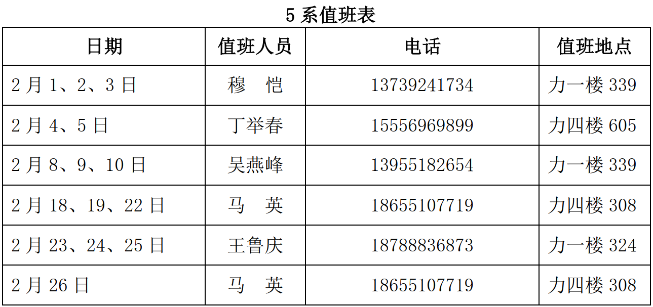 工程科学开元(中国)寒假值班表