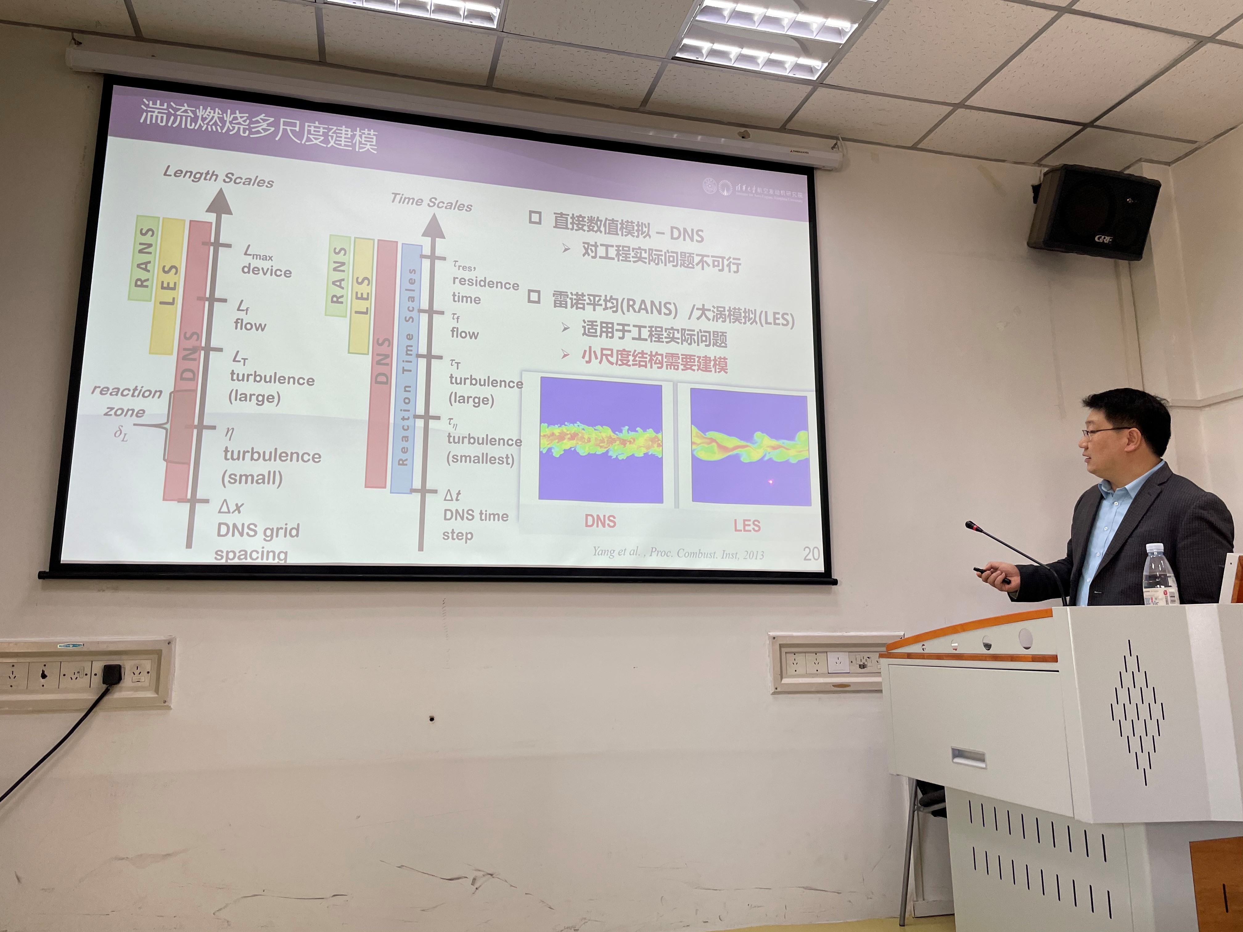 在报告会上,任祝寅教授首先介绍了中国和欧美国家航空发动机技术的发展现状,并由此展开,概括介绍燃烧反应动力学和湍流燃烧学等发动机燃烧的共性科学问题。随后,任教授详细介绍湍流燃烧新模型,以及湍流燃烧方向特别是在强湍流下点火及火焰传播机理,高雷诺数湍流与燃烧耦合机理,燃烧不稳定性的数值模拟等相关研究的最新成果。在自由讨论环节,与会师生积极提问交流,反响热烈。