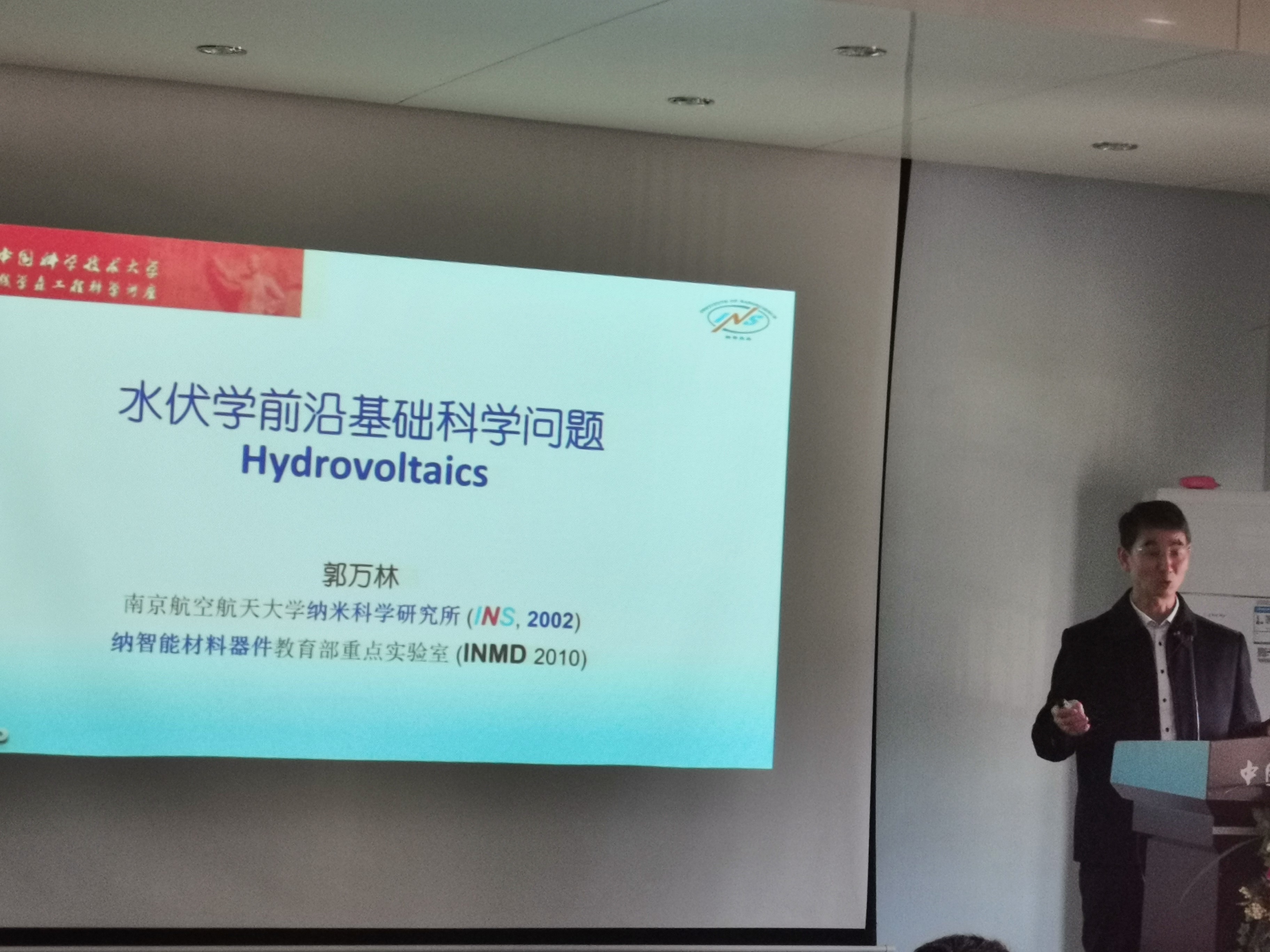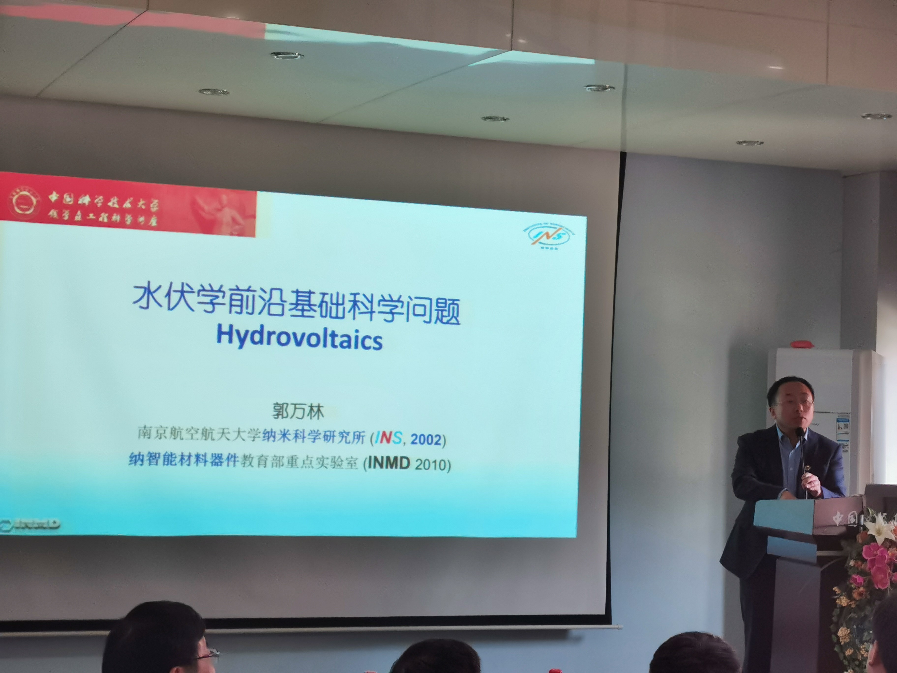 郭万林院士给与会师生带来了一场精彩的学术报告。郭万林院士介绍了太阳是地球上人类活动所需的能量供给者。水则是生命的要素和地球上最大的能量载体,吸收了达到地球的大部分太阳能量,并通过地球的水循环传播、转换能量。水分子的极性及形成氢键的特殊能力,使水与碳纳米材料等功能材料相互作用时产生电势,即水伏效应。水伏效应开拓了固液界面多场耦合研究新领域,为发展水伏能源技术创造了条件,也催生了水伏学。这里主要介绍水伏学、评述近两年水伏学相关的国际研究所取得的显著进展。各种新材料的使用和计算模拟方法能力、设备能力的提高、研究队伍的扩大,水伏生电现象、器件形式日益丰富,生电电压、输出功率,尤其是瞬时功率等都有数量级的提高和突破。水伏技术已经从诞生步入发展轨道。水伏能源作为从地球水循环获取电能的绿色新能源技术、水伏学作为一门刚出现的新学科,面临大量的科学问题和技术瓶颈。在总结作为潜在负碳排放能源技术的水伏技术近期发展的基础上,提出并探讨水伏学的未来发展方向和前沿基础科学问题。在自由讨论环节,与会师生积极提问交流,反响热烈。
