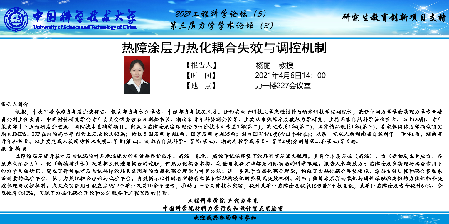 2021工程科学论坛(5)“热障涂层力热化耦合失效与调控机制”