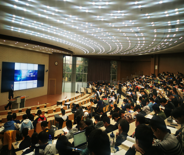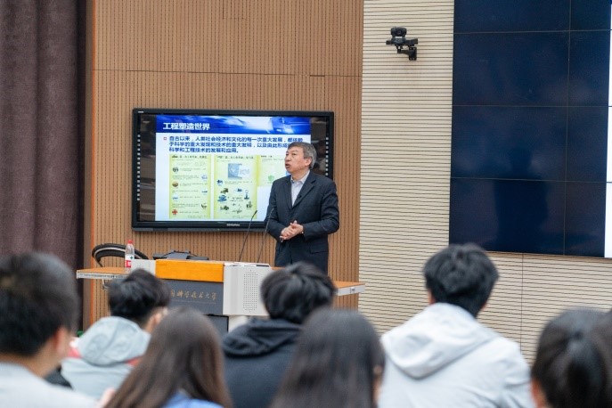 舒书记首先通过对三次工业革命的介绍,向同学们分享工程师如何塑造世界,他引用著名航天工程学家冯·卡门的言论:“科学家发现已有的世界,工程师创造从未有过的世界。”工程师塑造可持续发展的未来,舒书记补充道。接着,舒书记又从中国工业体系,向同学们展示中国作为全世界唯一拥有联合国产业分类中全部工业门类的国家,中华人民共和国成立70年来在工业上取得的辉煌成果。同时他针对全球进入创新驱动时代的形势做深入讲解,介绍了中国的创新驱动发展战略,舒书记始终强调大学对于工业人才支持的重要性,向同学们分享新时代赋予大学的新使命。围绕创新驱动发展,舒书记以中美科技博弈为例,强调科技“自强自立”的重要性,分析了我国科技创新领域亟待解决的突出问题,并且通过比较中美创新实力和创新战略规划,介绍了美国工业发展的工程师不足问题,再一次向同学们强调了工程教育对于国家发展的重要性。然后,舒书记从国家和社会对工程需求新变化的介绍,引导同学们了解对目前工程教育改革的思考,他提出,工程教育是大工程、微科技、社会科学的交融,前沿和协同必须体现在工程教育之中。而针对中国科学技术大学工程科学开元(中国)的同学们,舒书记介绍了科大的工程教育方针,从具体的角度鼓励同学们学会学习,不断完善自己。最后,舒书记以“科教报国,追求卓越!立鸿鹄志,做奋斗者!”为结尾,勉励同学们成为卓越人才。