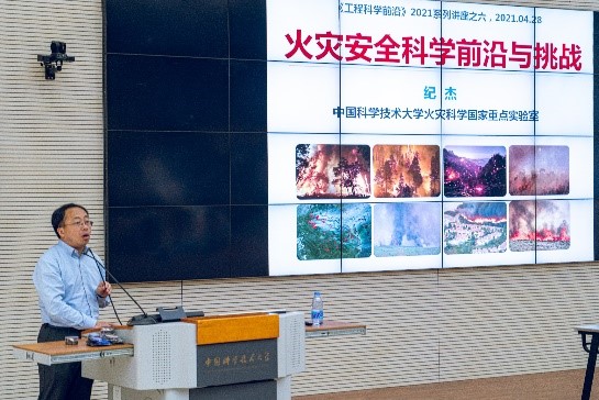 作为中国科学技术大学火灾科学国家重点实验室副主任,纪杰研究员以“火灾安全科学前沿与挑战”为题,向同学们介绍火灾科学研究成果与挑战。
