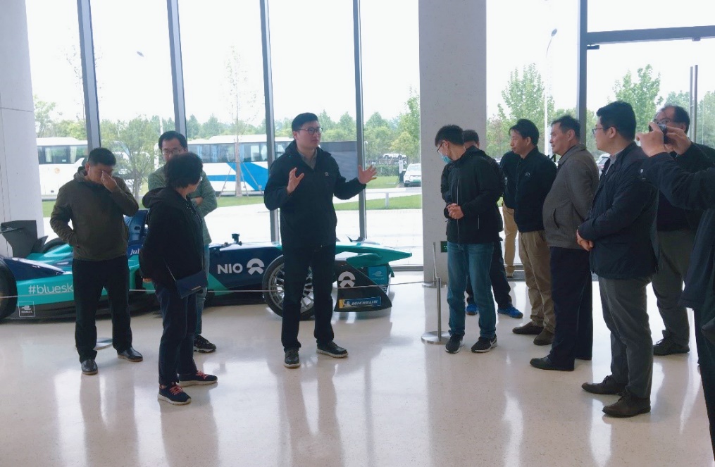 参观中,大家了解到,蔚来新能源汽车生产基地占地839.6亩,年产纯电动汽车可达12万台,近期在持续扩大产能。在蔚来汽车的展厅,大家参观了极具现代科技感的EC6电动轿车,以及非常酷炫的超级跑车及方程式赛车。