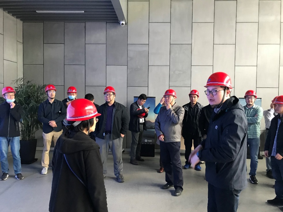 在蔚来汽车智能生产车间,讲解员介绍车间拥有约307台自动化机械手臂,实现了97%的自动化生产水平,具备每三分钟下线一台车的高效率生产能力。冷金属连接工艺、激光焊接技术使得整个车间没有火花,电焊弧焊灰尘吸尘设置做到了高清洁、高环保的生产车间。参观交流中,双方都表示将在电动汽车生产技术难点上展开合作,共同攻坚,制造出性能更好、智能化程度更高的国产品牌汽车。