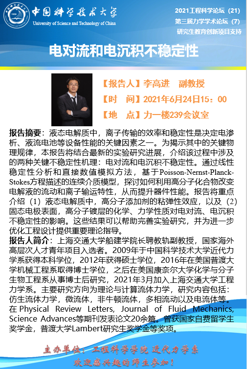 2021工程科学论坛(21)“电对流和电沉积不稳定性”