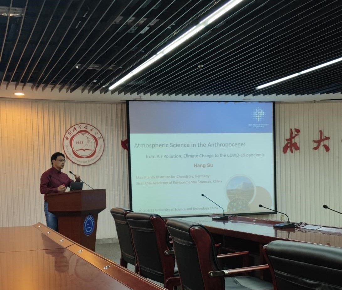 6月22日下午4点,德国马普化学所苏杭教授在中国科大理化大楼一楼科技展厅受邀做学术报告,题目为“Atmospheric Science in the Anthropocene: from Air Pollution, Climate Change to the COVID-19 pandemic”,现场数十位师生同学相聚前往讨论交流。