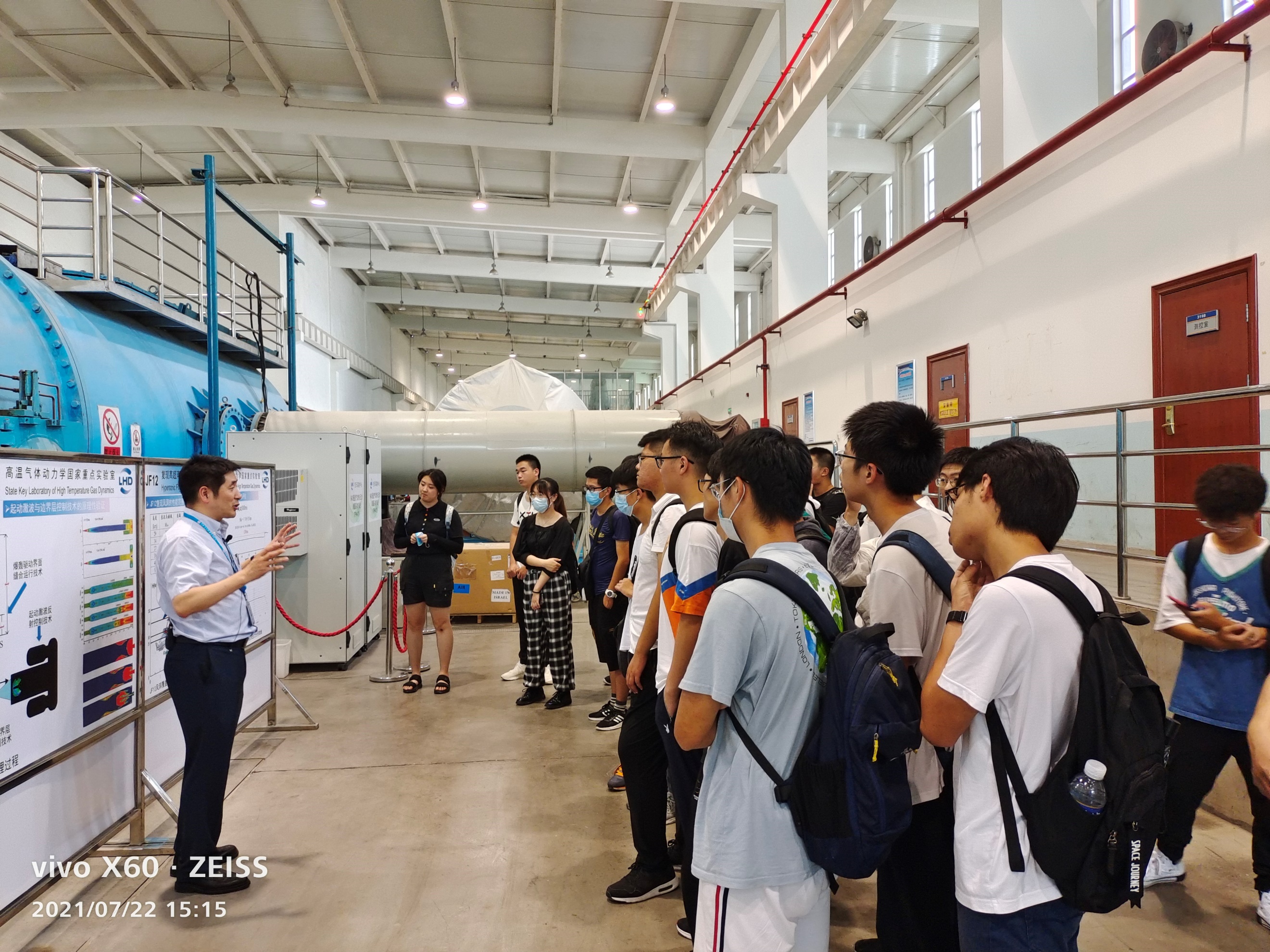 7月22日下午两点,同学们到达中国科开元(中国)力学研究所怀柔园区。韩桂来老师带领同学们参观了高温气体动力学国家重点实验室。在实验室的展示大厅中,韩老师为同学们详细讲解了超级风洞JF-12和JF-22的运行原理。看到我国在高焓风洞建设领域的重大成就,同学们都感到十分自豪。进入实验室后,韩老师实地介绍了风洞各个组成部分、实验流程、数据测量分析的各项技术以及实验成果,并解答了同学们关于实验器件、表面温度测量等问题。韩老师精彩风趣的讲解,鼓舞了在场的每一位同学。我班师生与韩老师合影留念后,班主任李老师代表班级向韩老师赠送了纪念牌。
