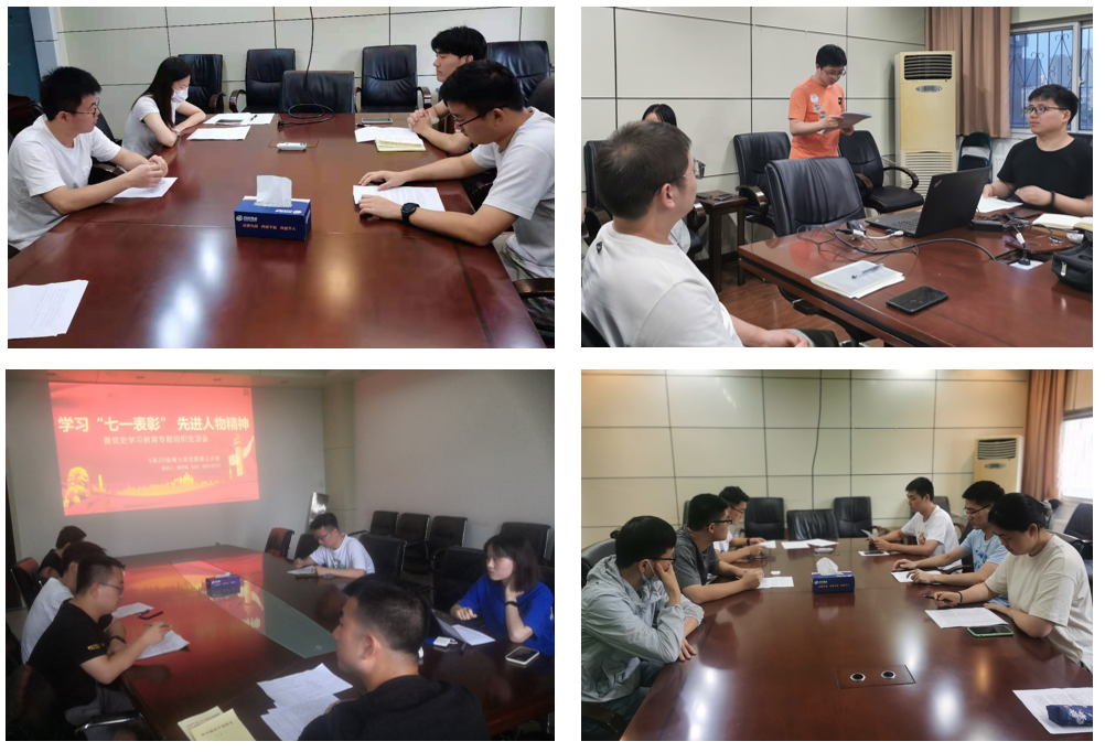为更好的进行党史学习讨论,本次组织生活会以党小组的形式展开。支部共计4个党小组,每个党小组7名党员。4个党小组于2021年7月底分别召开会议,会议主持人分别为刘博,张佳龙,梅开男,何小康。