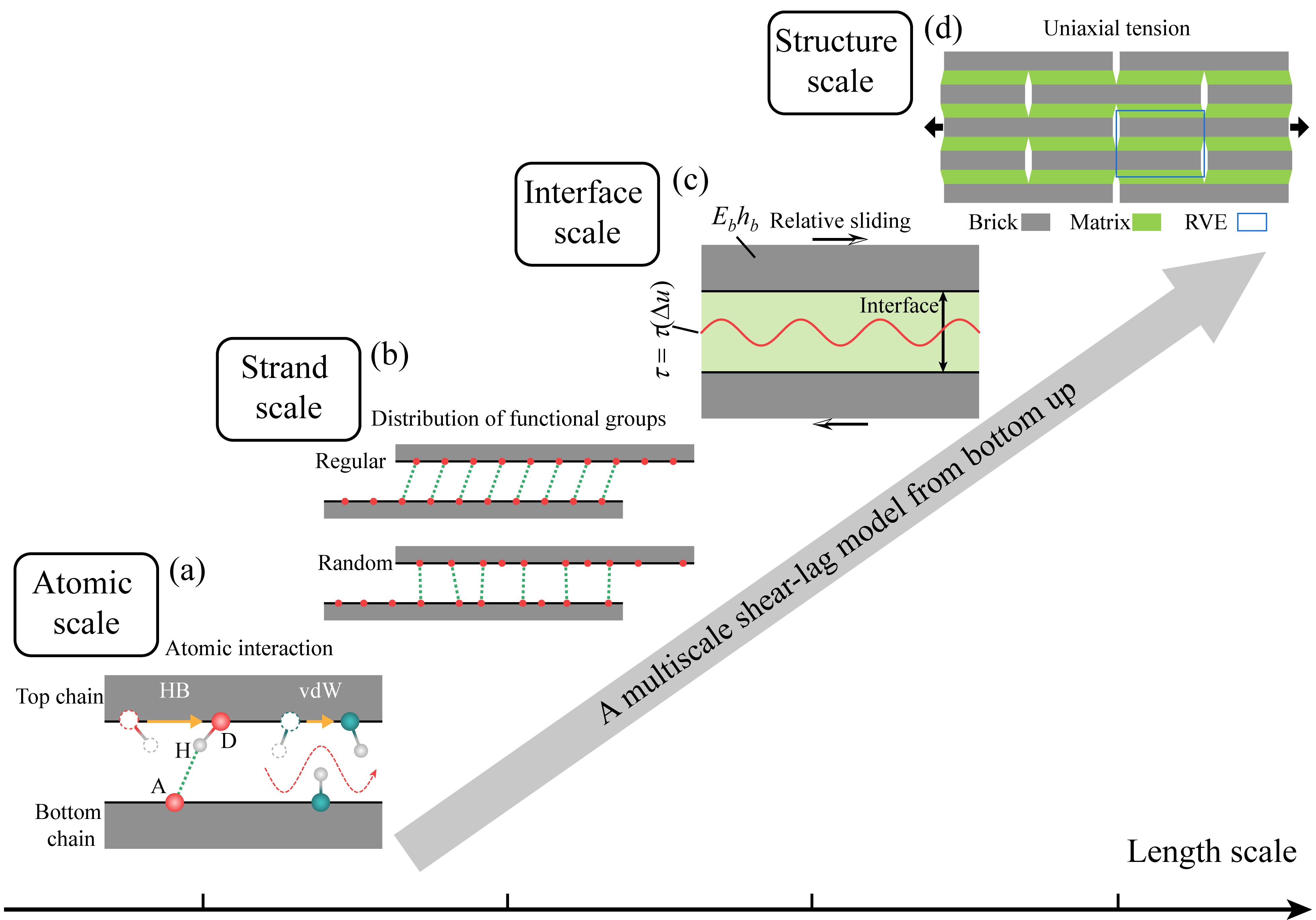 图1. 非共价界面层状纳米复合材料的多尺度力学框架。