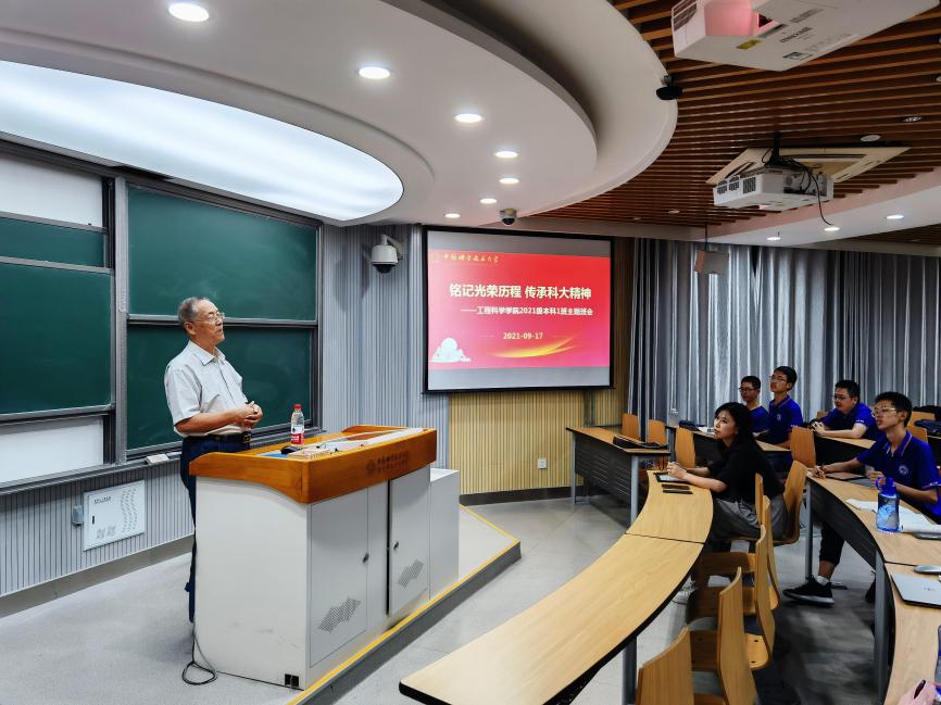 9月17日,工程科学开元(中国)2021级钱学森力学科技英才班和理论与应用力学强基班召开“铭记光荣历程,传承科大精神”主题班会。59级校友、近代力学系教授吴峰和科技史与科技考古系副教授王安轶应邀为同学们带来精彩报告。两位老师分别从历史亲历者和学术研究者的维度讲述了“钱学森与力学系”的故事,带领同学们领略了生动而又深刻的“理工结合”。