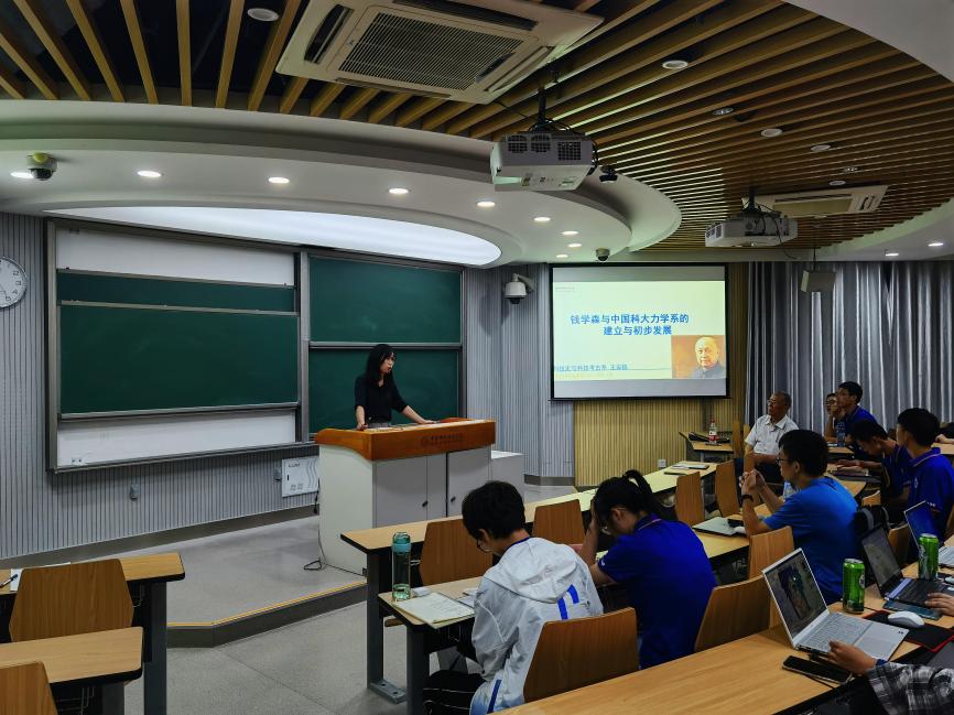 王安轶老师从历史研究的角度带来了“钱学森与中国科大力学系”的故事,带领同学们开启了一场有趣的科学考古。王老师全面介绍了钱老在哥廷根应用力学学派思想基础上发展的工程科学思想,钱老提出工程科学是自然科学和工程技术之间的桥梁,培养的是解决工程中科学问题的研究型人才。钱老不仅是一位杰出的战略科学家,同时也是一位优秀的教育家,从他归国后在国内倡导“工程科学”思想,到参与创办中国科大担任力学系首任系主任指导实施“重基础、宽口径”的理工结合人才培养,再到晚年提出的引发教育界深思的“钱学森之问”,无论是从教育思想还是教育实践,钱学森先生是当之无愧的教育大师。