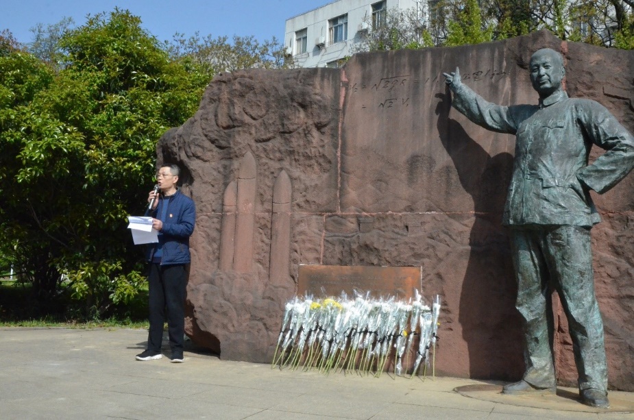 院党委书记刘明侯教授带领师生们回顾了钱学森先生海外求学、破障回国、坚定入党、潜心科研的一生。他结合钱学森先生的故事,鼓励同学们不忘初心、牢记使命,希望大家从钱学森先生这样的优秀共产党员的先进事迹中汲取营养,把家国情怀融于科学研究,把毕生追求奉献给祖国。