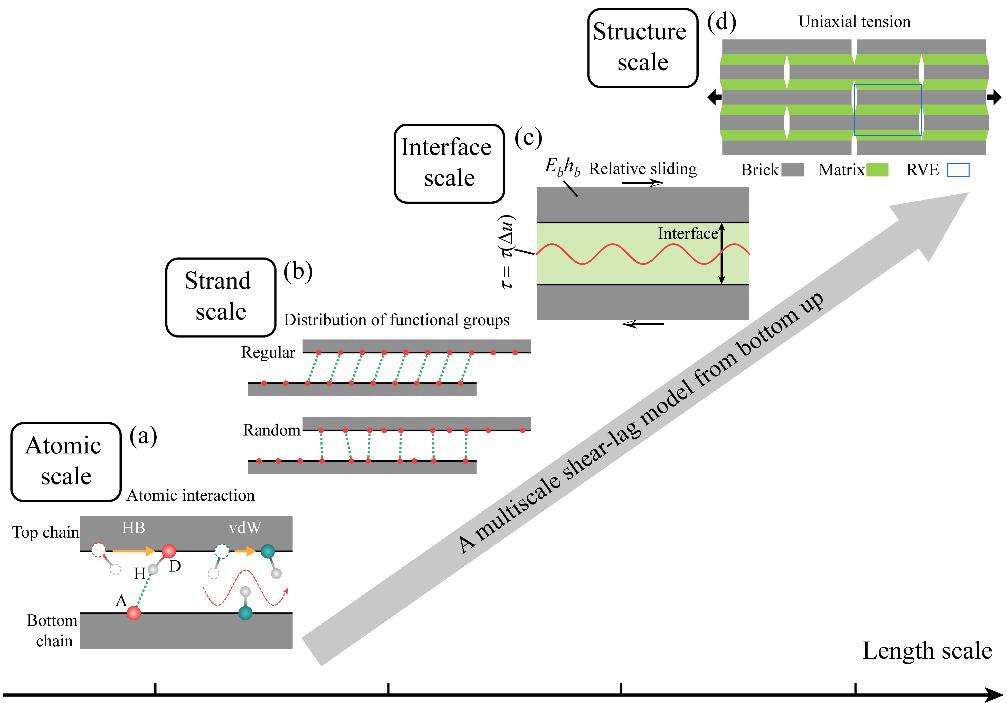 图1. 非共价界面层状纳米复合材料的多尺度力学框架