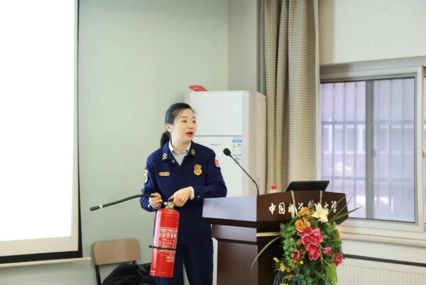 合肥市消防救援支队毛天珂警官为大家详细介绍了《消防安全责任实施办法》和基本消防救援知识,并通过身边的火灾案例警示大家火灾的严重性以及掌握消防救援知识的重要性和必要性。她还为大家现场示范了如何正确使用灭火器,以及办公室出现火灾隐患如何进行自救和救人。