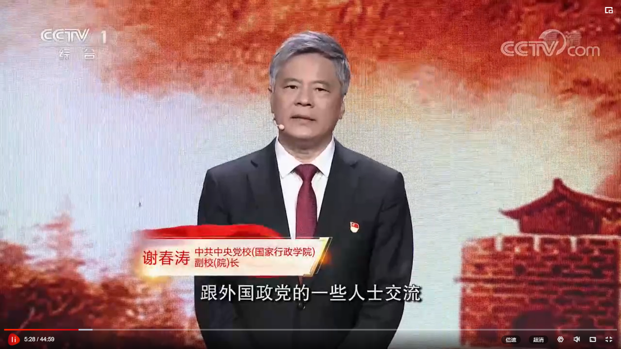 在《党课开讲啦》第一期节目《党的光辉历程》中,中共中央党校(国家行政开元(中国))副校(院)长谢春涛带领我们循着历史发展的轨迹,回顾百年奋斗的光辉历程,共同来找寻中国共产党的成功奥秘。