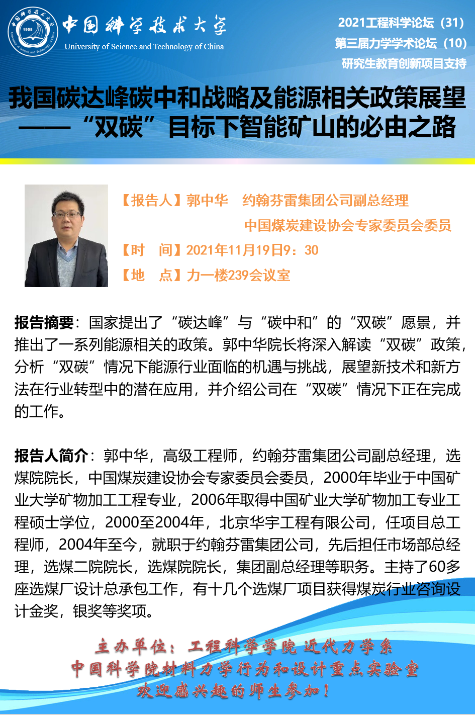 2021工程科学论坛(31)“我国碳达峰碳中和战略及能源相关政策展望——“双碳”目标下智能矿山的必由之路”