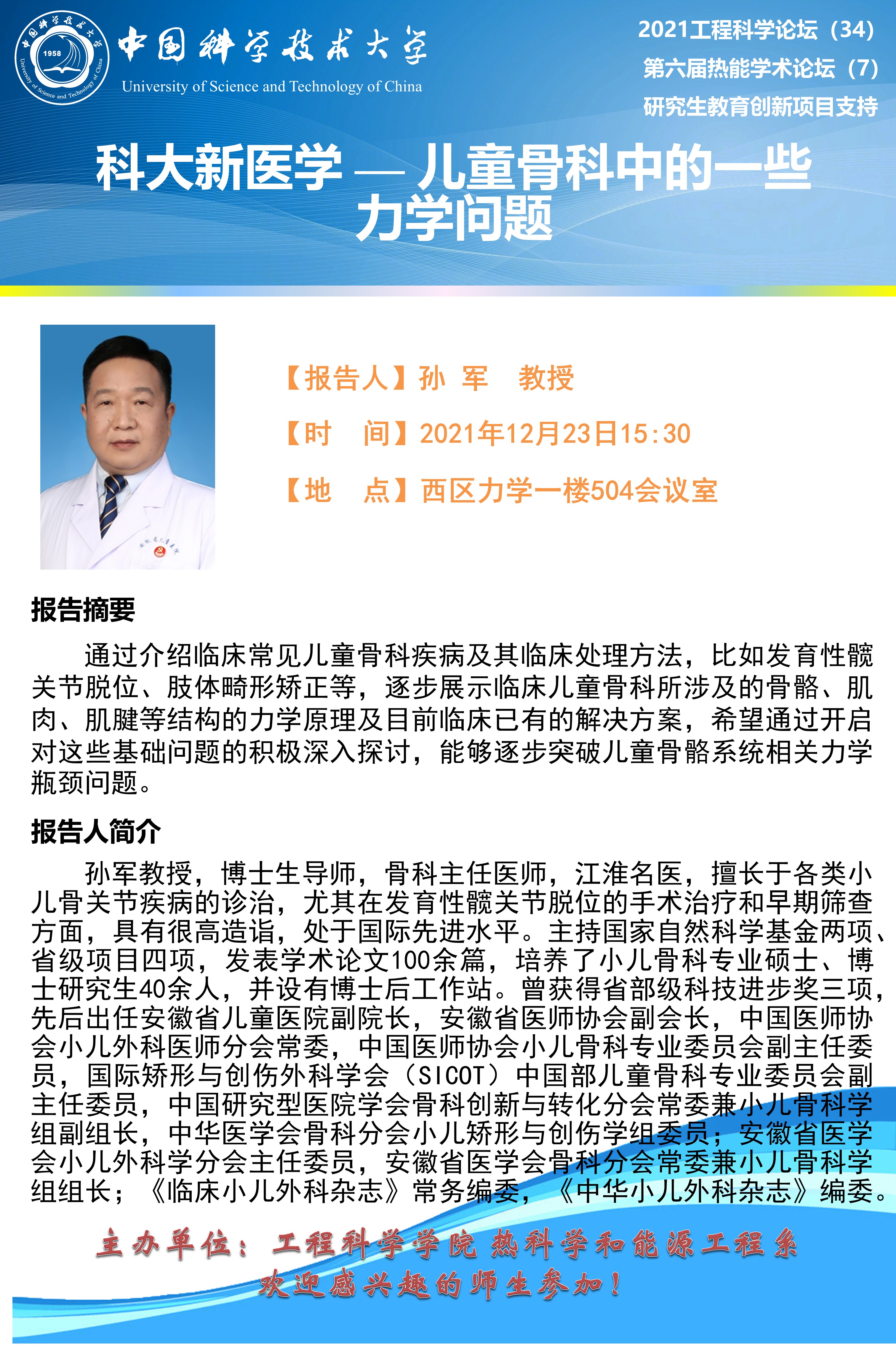 2021工程科学论坛(34)“科大新医学 —— 儿童骨科中的一些力学问题 ”
