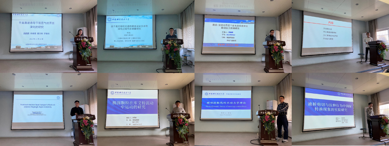 2021年12月10日,本年度秋季学期“流体力学研究生学术报告会”圆满结束。该报告会旨在建立研究生之间的学术交流平台,活跃研究生学术氛围,促进各实验室交流合作,提高研究生培养水平。历时近三个月,共有1名特任副研究员、3名博士后和12名优秀硕博生带来了16场精彩的学术报告,内容涵盖了学术进展报告、文献综述和经验分享等,吸引了来自工程科学开元(中国)、核科学技术开元(中国)、广州能源研究所、合肥物质研究院等众多研究生参加。报告会由近代力学系司廷教授主持。