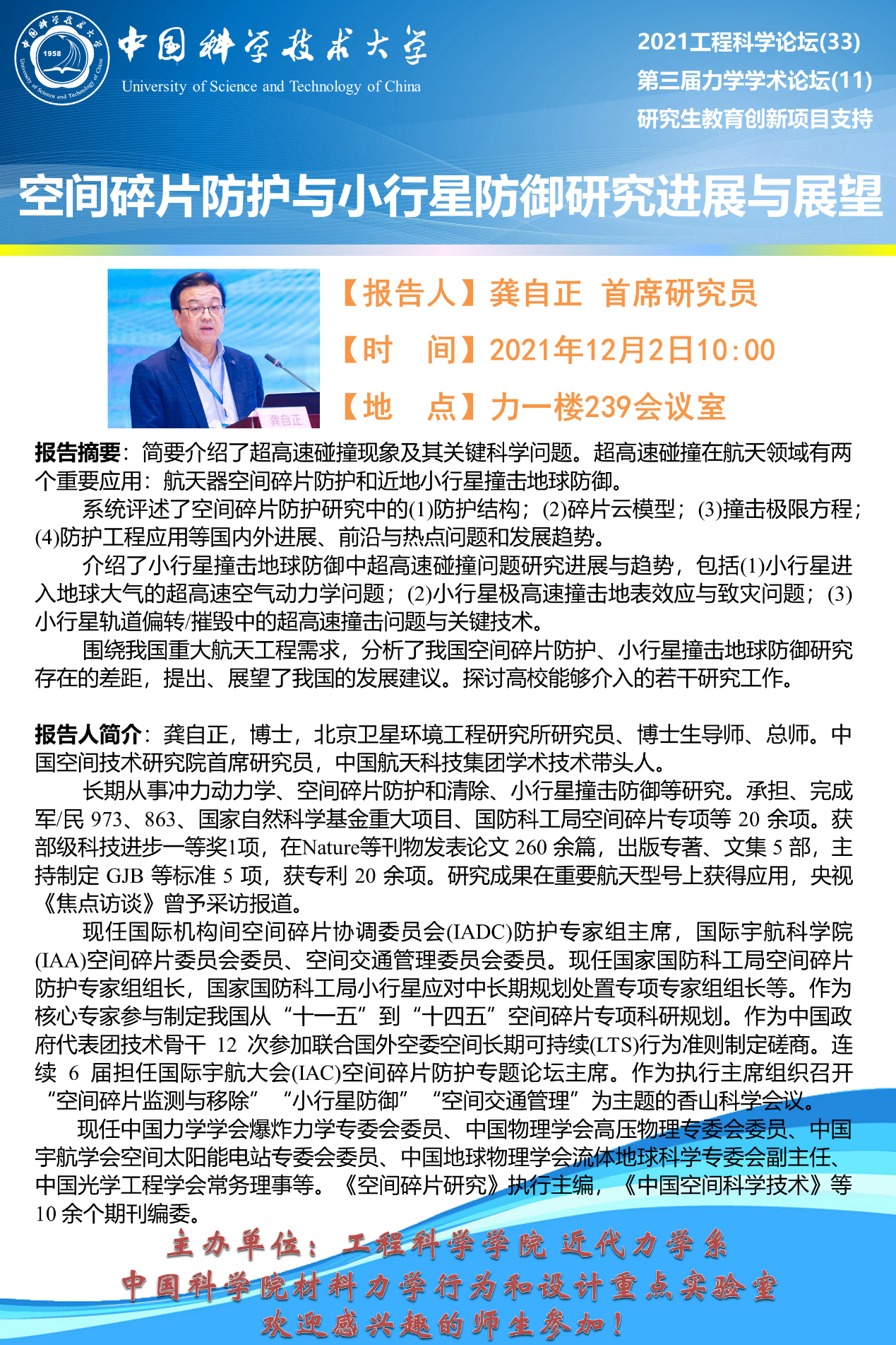 2021工程科学论坛(33)“空间碎片防护与小行星防御研究进展与展望”