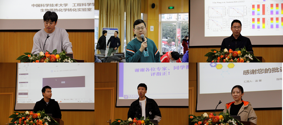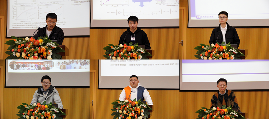 下半场,刁瑞、周旭、王储、张德斌、张粜和温馨等同学分别介绍了“生物油蒸馏残渣的气化机制及行为预测”、“氩热等离子体射流特性的大涡模拟研究”、“生物质热解气选择性冷凝的实验研究”、“界面传热下傅立叶定律的完备性研究”、“热障涂层对叶片表面气膜冷却性能影响的实验研究”和“一种基于温差与聚光光伏发电的新型 PV/T 系统的研究”。