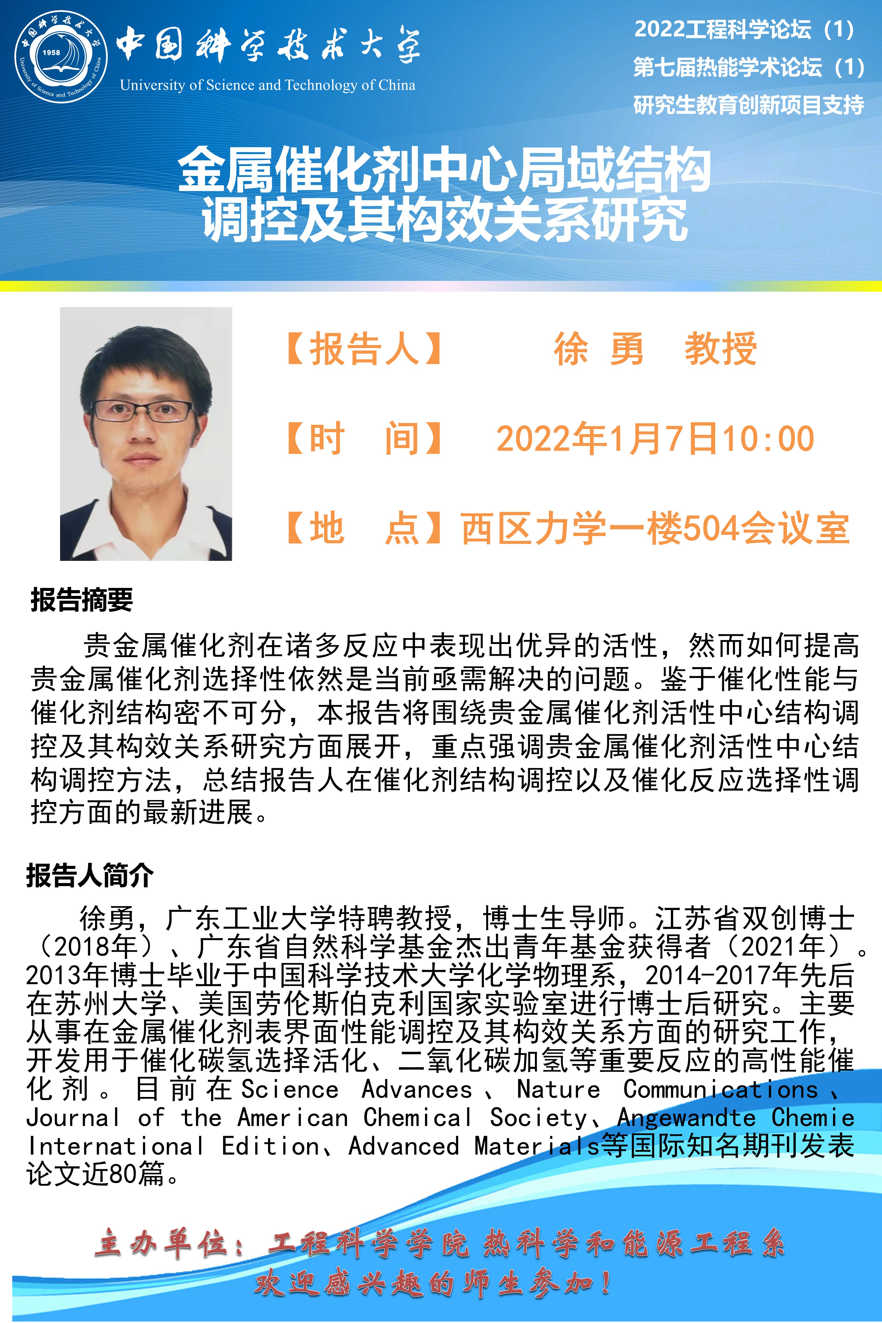 2022工程科学论坛(1)“金属催化剂中心局域结构调控及其构效关系研究”