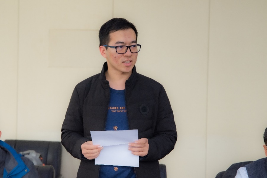 2019年合志奖学金获得者何卓洋在发言中代表所有获奖同学感谢刘合院士的无私帮助与热切鼓励,感谢各位领导和老师的关心与培养。他表示,“合志”奖学金的获得对他个人大学的学习意义重大、影响深远,使他深深地感受到老师和同学们肯定与认可,从而建立起自信,正是“合志”奖学金的初心激励着他始终追求卓越,不断奉献,并在2021年获得郭沫若奖学金。他表示将与所有获奖同学一起带着这份荣誉百尺竿头、更进一步,秉承科大精神,继续奋发图强,将来走上工作岗位努力创新、报效祖国。